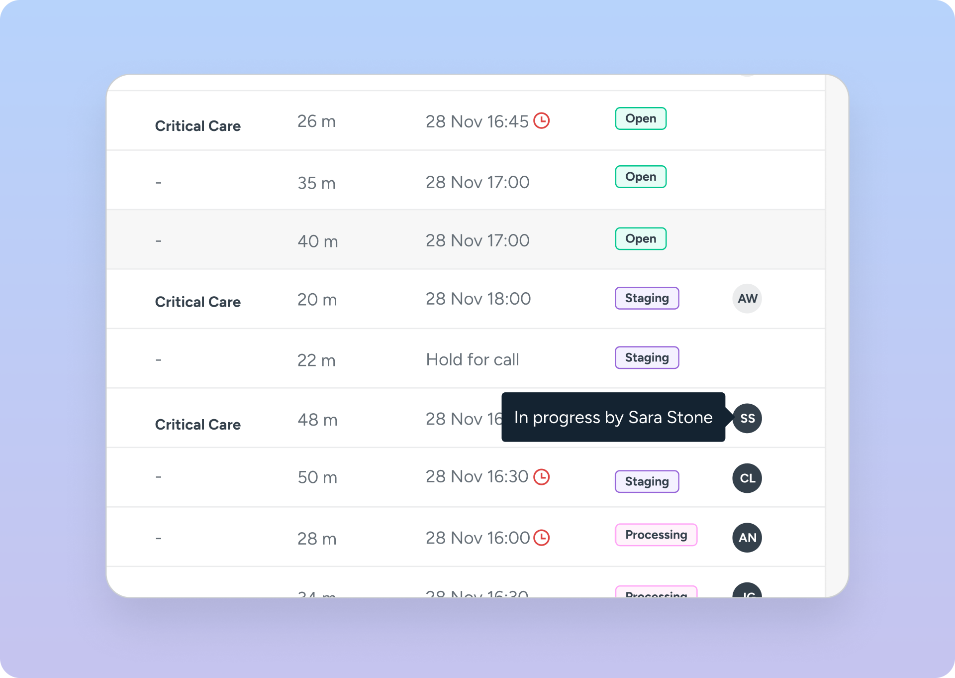 Activity information helps to inform managers of the workload, and opens up order transparency