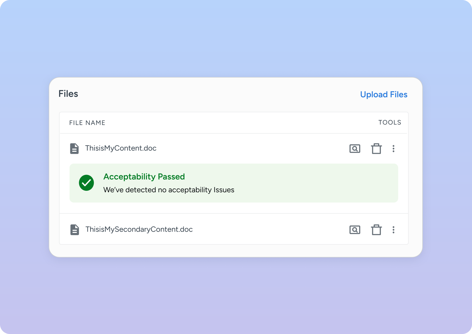 No more manual reviews of each document for acceptability issues, specialist know upfront